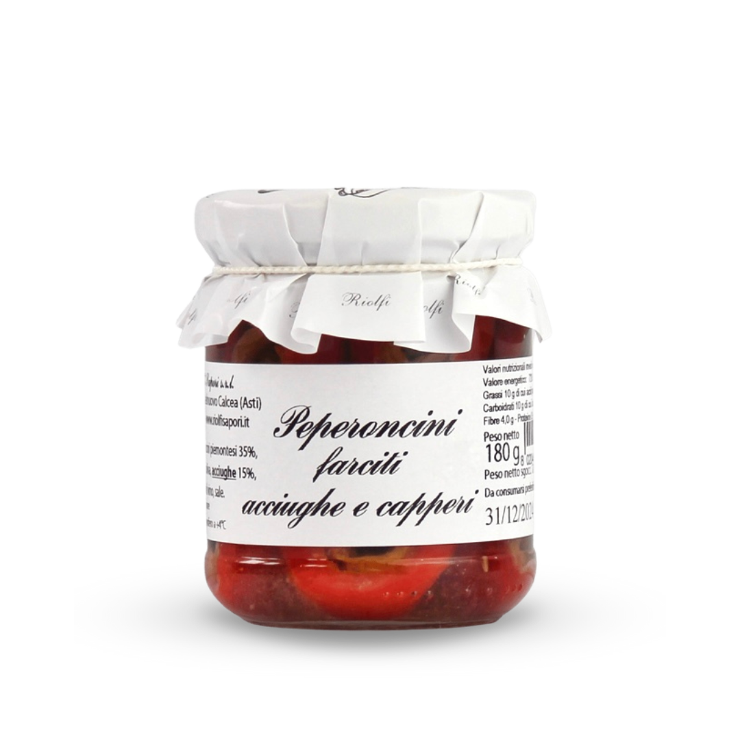 Piemontesische Chilis gefüllt mit Sardellenfilet und Kapern.