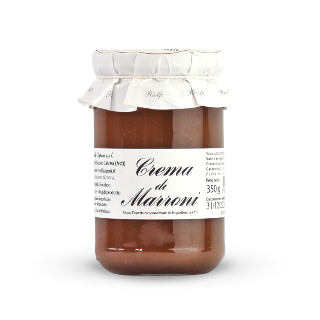Une crème préparée à base de châtaignes, de sucre de canne et d'extrait naturel de vanille, excellente seule ou pour garnir les desserts.